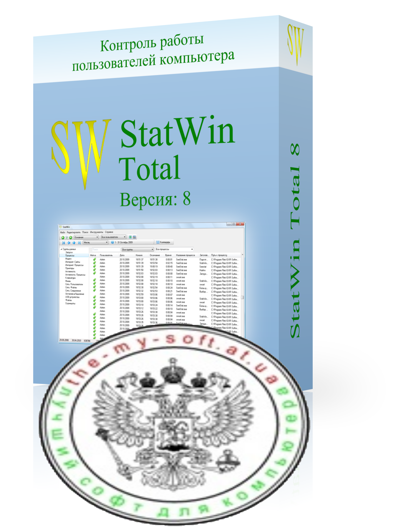 Программа StatWin Pro позволяет контролировать все производимые на компьютере действия. StatWin Pro поддерживает многопользовательский режим. Она ведет статистику для всех пользователей (с указанием имени входа систему), независимо от того, под учетной записью какого пользователя вы устанавливали программу. StatWin Pro также поддерживает автосохранение (для предотвращения потери информации во время работы на компьютере в случае зависания системы). С помощью данного приложения можно также защищать файлы (от чтения, записи, копирования и удаления) и любые параметры реестра (от удаления и изменения), устанавливать ограничение времени работы в Интернете и в реальном времени просматривать процессы. К основным возможностям добавлены функции администрирования Windows: доступ к операционной системе только определенным пользователям, запрет доступа к Проводнику, Корзине и Моему компьютеру, запрет на изменения различных настроек системы.