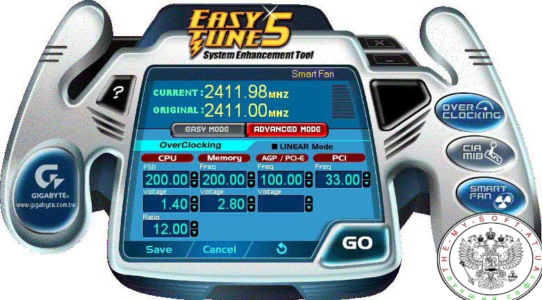 Программа EasyTune5 предназначена для мониторинга материнских плат Gigabyte и настройки некоторых их функций. Эта утилита обладает достаточно удобным и привлекательным интерфейсом. Она в реальном времени отображает сведения о скорости вращения вентиляторов, напряжениях питания, множитель, напряжение и текущую частоту процессора, а также передает данные с термодатчиков. Несомненным плюсом программы является возможность настройки текущих данных для увеличения быстродействия и/или уменьшения количества простоев процессора при низкой нагрузке. В зависимости от текущей температуры процессора EasyTune5 позволяет установить различные диапазоны скоростей, что при большой нагрузке будет способствовать лучшему охлаждению, а при минимальной — снижению уровня шума, издаваемого вентилятором.