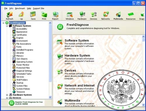 Утилита FreshDiagnose предназначена для диагностики системы. Кроме того, программа содержит несколько специальных тестов для оценки уровня производительности анализируемой конфигурации.