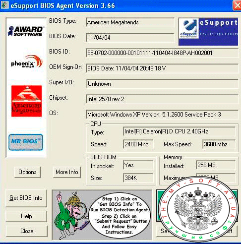 Приложение BIOS Agent предоставляет пользователю полную информацию о содержимом микросхемы BIOS. С помощью данной программы вы можете получить сведения о производителе микросхемы, текущей версии и дате релиза; типе материнской платы и чипсете; типе установленного процессора, его текущей частоте и предельной (которую поддерживает BIOS на данной платформе). Утилита также отображает информацию о количестве установленной оперативной памяти, а также объем каждого модуля. Программа BIOS Agent пригодится пользователям, которые постоянно следят за обновлениями BIOS. Информацию, полученную с помощью этой утилиты, можно распечатать или сохранить в виде текстового файла.