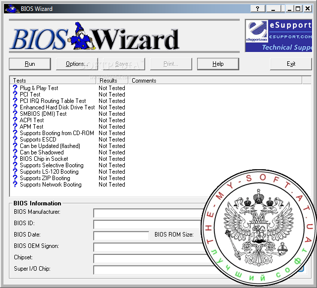 Программа BIOS Wizard позволяет узнать, поддерживает ли материнская плата возможность обновления BIOS. Принцип ее действия заключается в проведении соответствующих тестов (более 10). Эта утилита максимально проста в использовании: достаточно запустить ее и дать команду проанализировать BIOS. После проведения тестов программа выдаст полную характеристику поддерживаемых и неподдерживаемых параметров.