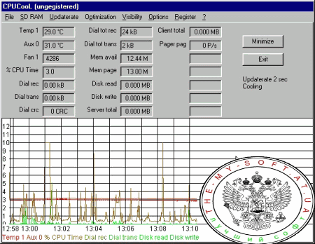 Программа CPUCooL предназначена для мониторинга работы материнских плат. После установки и запуска значок программы помещается в область уведомлений Windows и отображает различную информацию, получаемую с термодатчиков. Программа содержит семь различных утилит, позволяющих следить за температурой и напряжениями блока питания компьютера, регулировать скорость вращения вентиляторов (для большинства моделей материнских плат, построенных на чипсетах от ALI, AMD, Intel, NVIDIA, SIS и VIA). С помощью CPUCooL вы также сможете программными средствами охладить компоненты компьютера и оптимизировать работу процессора и памяти. Кроме того, программа поддерживает технологию S.M.A.R.T. и отображает текущее состояние основных параметров винчестера.